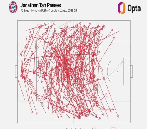 97%,拜仁后卫约纳坦塔是本赛季欧冠传球成功率最高的球员 -